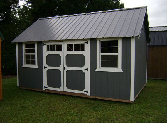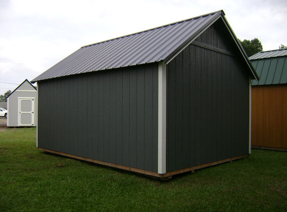 The Side Lofted Garden Shed is beautifully designed A-Frame with a 72" wide double door, 2- 2x3 windows installed on the side, and 6'3" Tall walls to help with your small and large storage needs (8' wide models come standard with 6'3" walls) . The floor is structured on a notched treated 4x6 skid runners to better stabilize and support the 16" on center treated 2x6 floor joist, topped with 3/4" flooring. A diamond plate kick panel is installed at the bottom of a 72" wide door edge and heavy duty security latches secure the top and bottom of the second double door. The walls are studded 16" on center. The exterior walls can be covered with 50-year LP Smart Siding (paint or 10-year "No Fade" urethane finish), metal, or vinyl in a selection of colors. Two air vents are installed for circulation and temperature control. The Trusses are joined with metal truss plates to insure a more stable roof. The Side Lofted Garden Shed has 1 or 2 lofts ranging from 4' to 8' depending on the size. The roof is covered in your choice of shingles or 40 year metal in a variety of colors. Due to the small stature of the 8' wide buildings 2x4 floor joists and a single door are used.